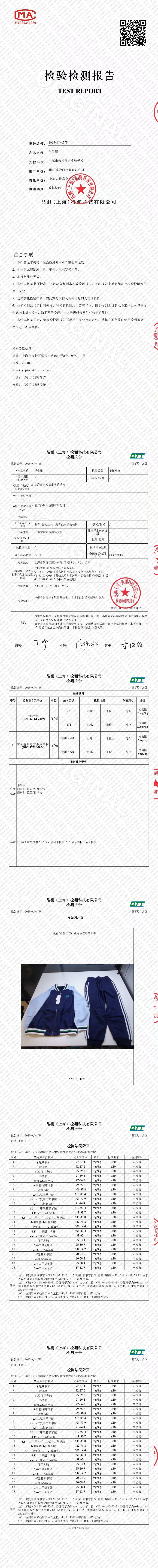 上海市宋校嘉定实验学校小学校服二检报告(1)