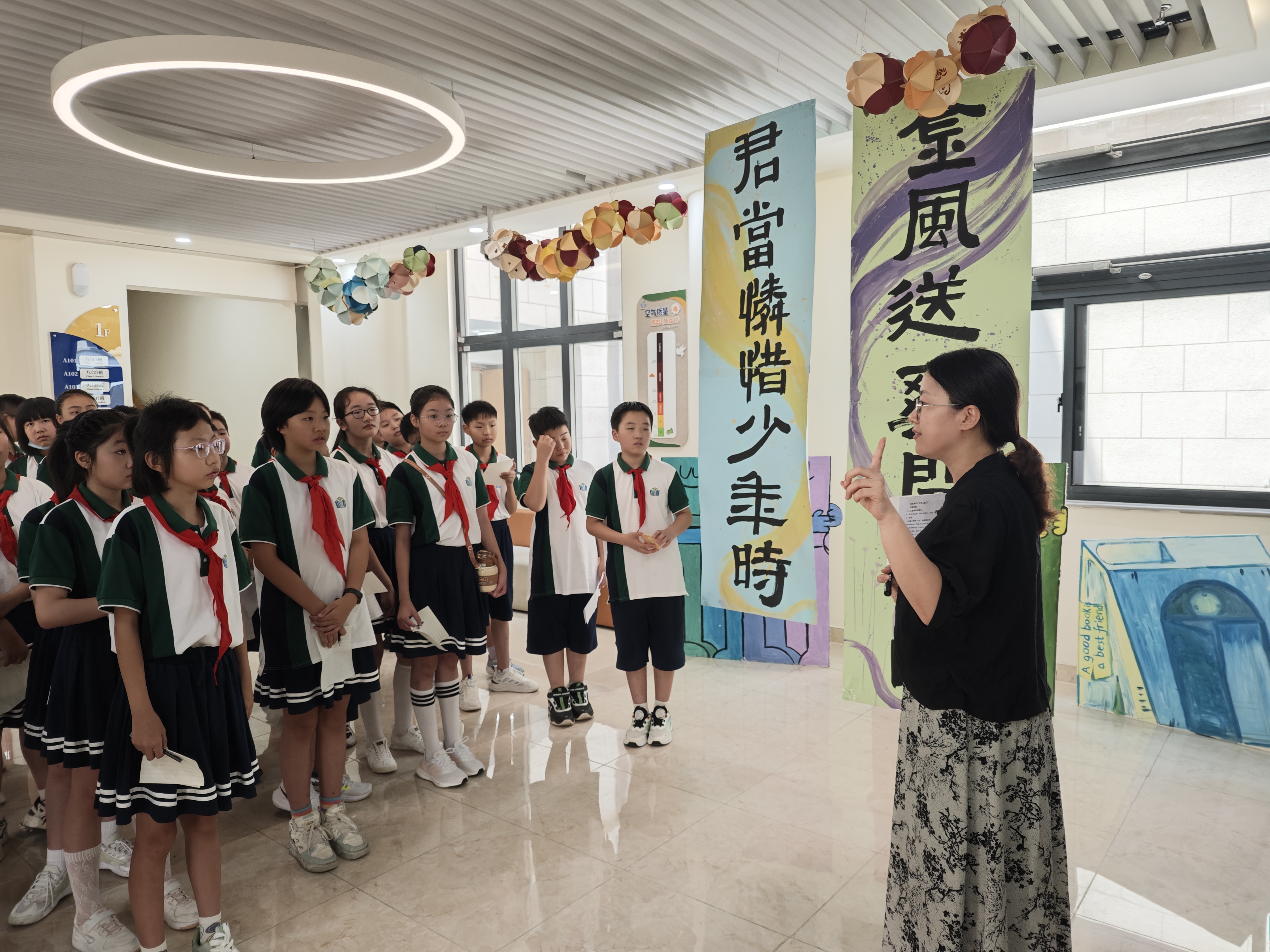 一楼中学大厅的晨演介绍,向同学们发出了“每周三等你‘艺’起精彩”的邀约。期盼在未来的舞台上,同学们能以才艺为笔,绘就属于自己的辉煌篇章。