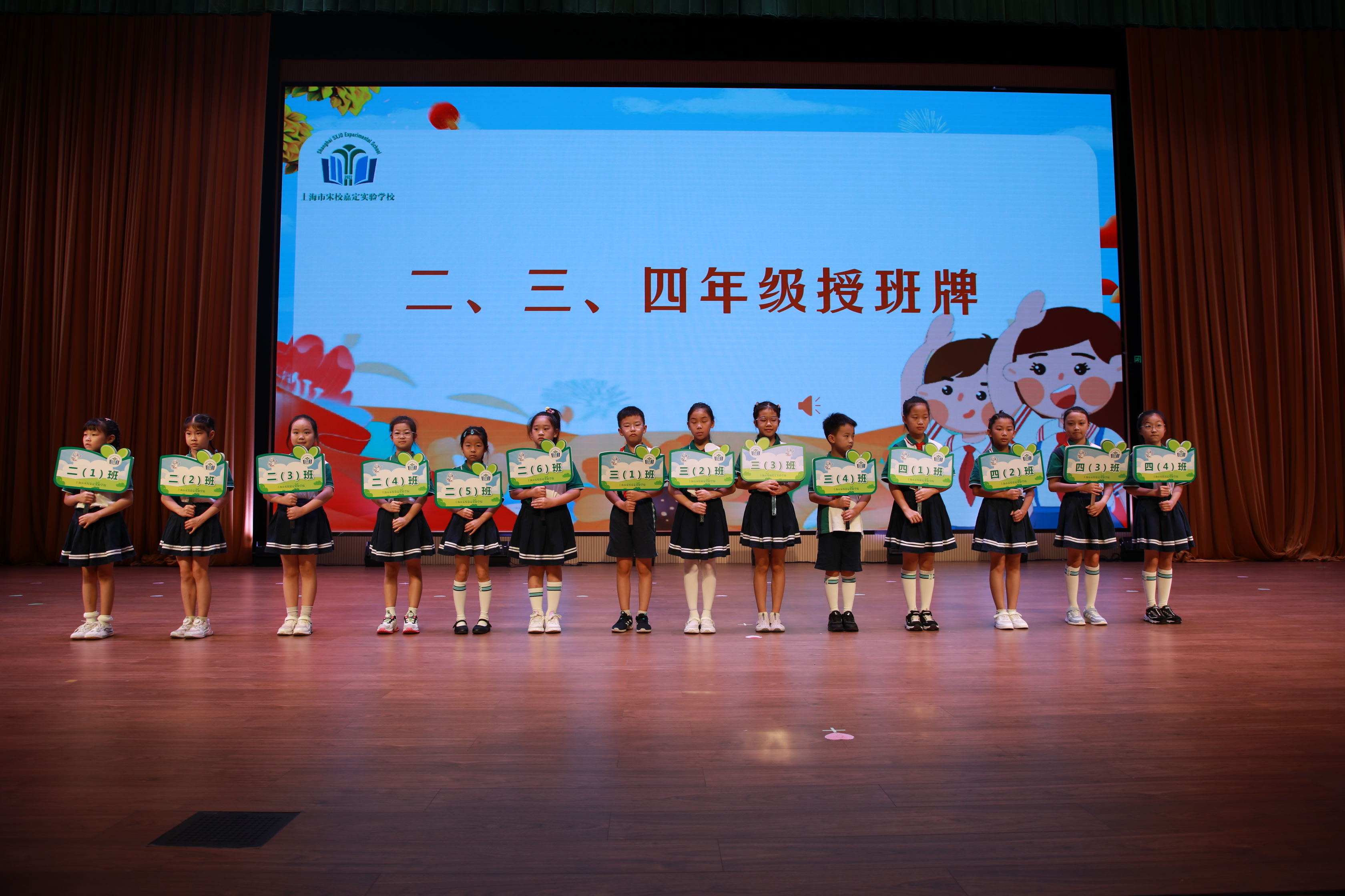 班牌授予仪式将本次开学典礼推到了高潮。各年级班级代表依次上台领取新班级班牌,这不仅是一份成长的象征,更是对他们过去努力的认可和对未来成长的期许。