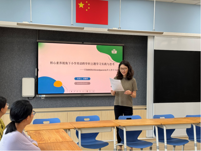 9月25日,徐颖楠老师和俞璐男老师分别在教研组内分享了在融合教育方面的实践经验。徐颖楠老师为初中语文教学提供可操作的育人情境教学实践范例和方法,对提高初中学生的语文素养和综合素质具有积极的推动作用,使学生在更优质、更有意义的语文学习环境中成长。俞璐男老师基于大单元教学,为小学英语教学提供可借鉴的跨学科主题教学范例,帮助教师在教学中更好地落实核心素养培养目标。同时,也为提高学生的学习兴趣和综合学习能力提供了一种有效的教学方法。