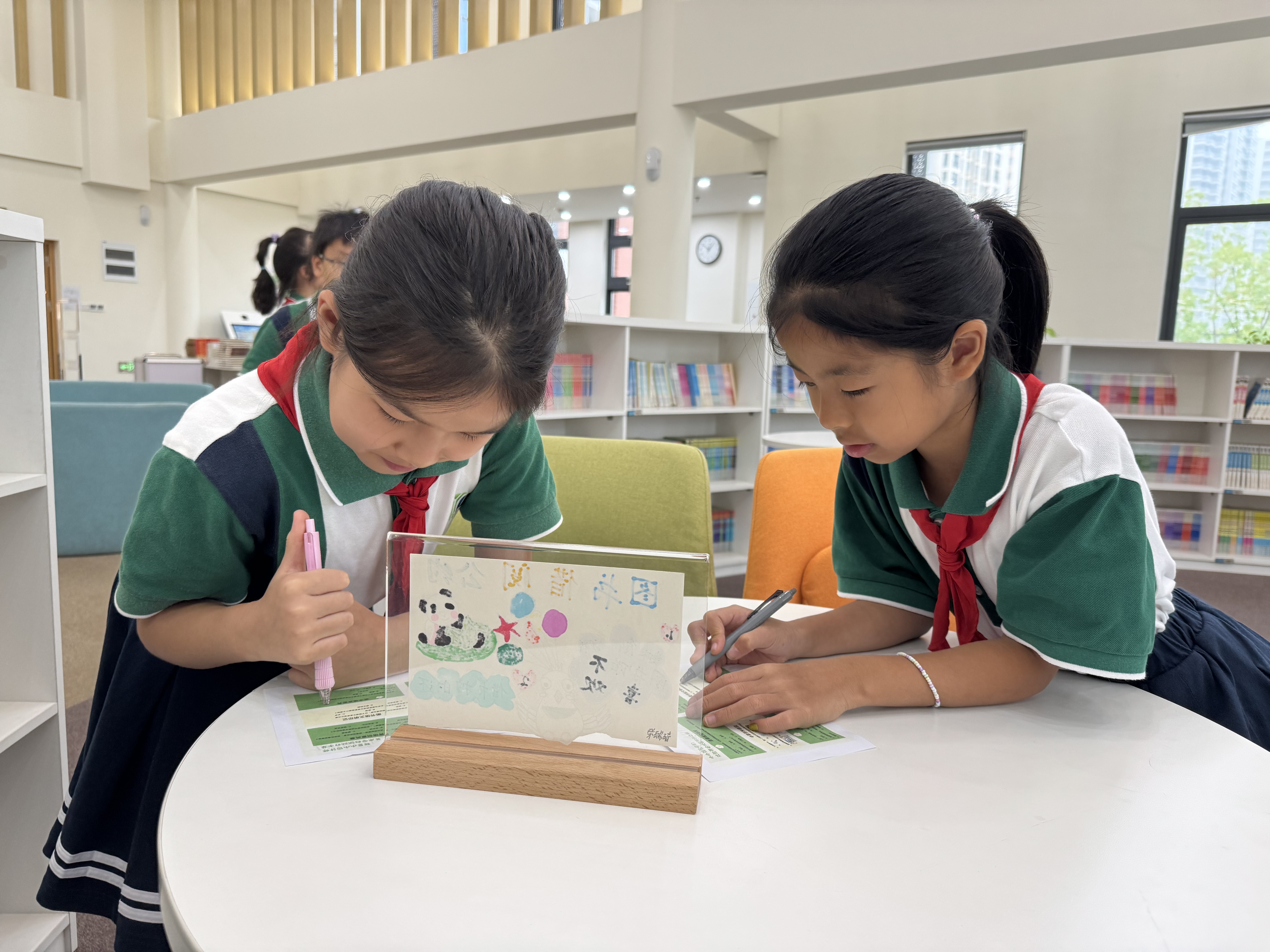 四年级的同学们摇身一变,成为了图书馆的“空间魔法师”。从实地“探馆”寻找优化点,到头脑风暴碰撞“金点子”,再到亲手绘制创意草图,每个环节都凝聚着孩子们的心血。他们为墙面设计生动的读书海报,为桌面摆上精美的文明标语,还创作了可供大家交流的读书笔记墙。最终呈现的“宋嘉书海”新貌,不仅温馨有趣,更是“我们的图书馆我们做主”的最佳诠释。