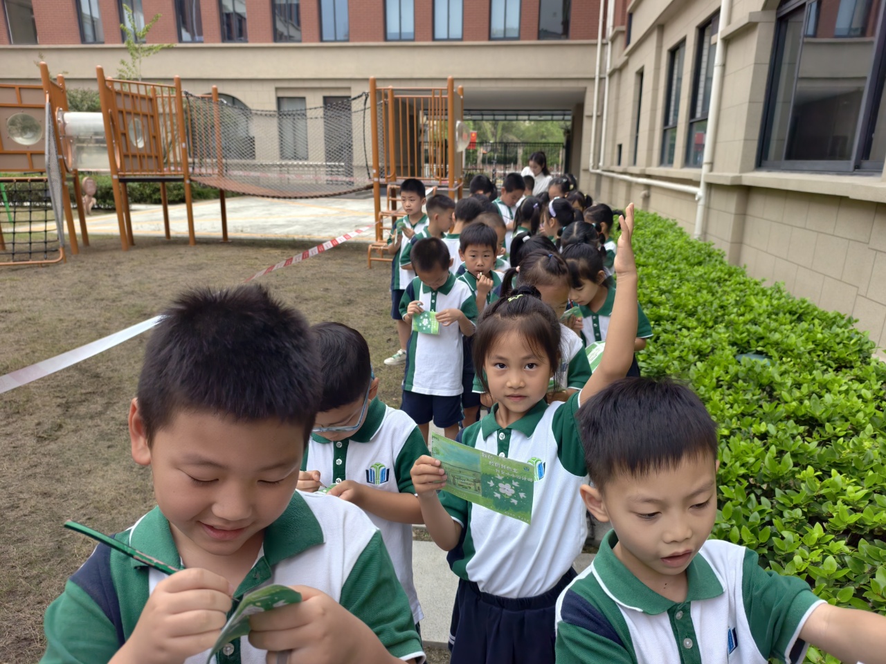当美术课走进自然,便成了最美的“行走美育课”。三年级的小画家们化身“自然美创师”,在中草药种植区里大显身手:他们设计的菜园标识牌,用稚嫩的笔触诉说着薄荷的清凉、艾草的坚韧;彩绘的栅栏与石柱,让斑驳的角落变成会讲故事的绘本;就连簸箕、篮筐也成了“艺术载体”,中草药纹样在布面上舒展,串联起走廊里的“中药香”。带着打卡单,孩子们边逛边学,在欣赏标识、寻找石画的过程中,既辨识了草药的样貌,又品味了线条与色彩之美。在这里,美术不再是画纸上的创作,而是与自然、文化深度融合的生命体验。