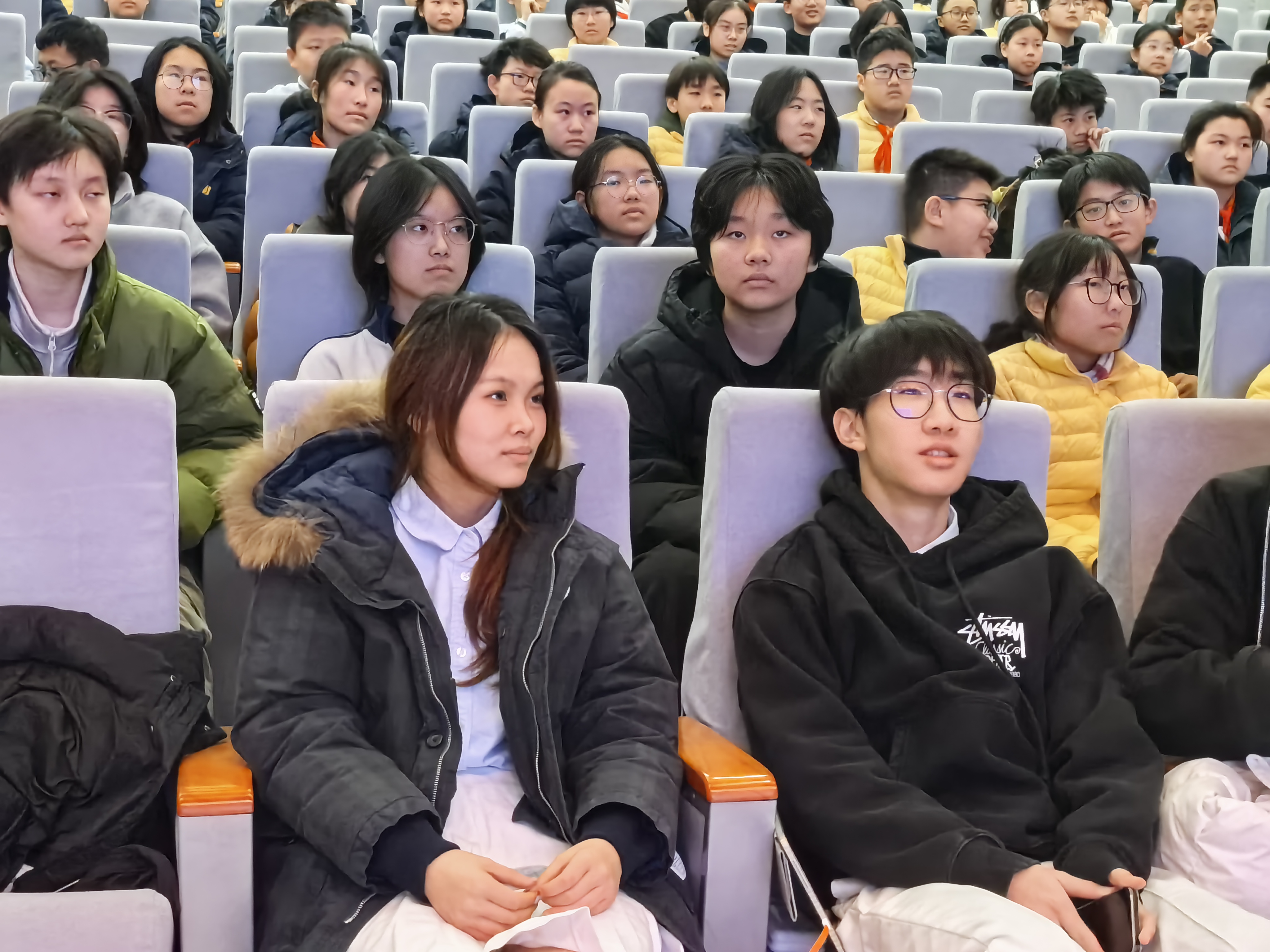 春启新程,筑梦同行。1月16日下午,宋嘉八年级年级大会现场暖意融融,学校特别邀请上海宋庆龄学校中国部高中2026届的七位优秀学长学姐,在领队孟群老师的带领下跨校区到访,带来了一场干货满满、诚意十足的成长分享会。八年级作为初中生活的关键爬坡期,是承上启下的重要节点,学长学姐们以“过来人”的鲜活经验,为正面临知识难度提升、寻求方向指引的八年级学子传经送宝。