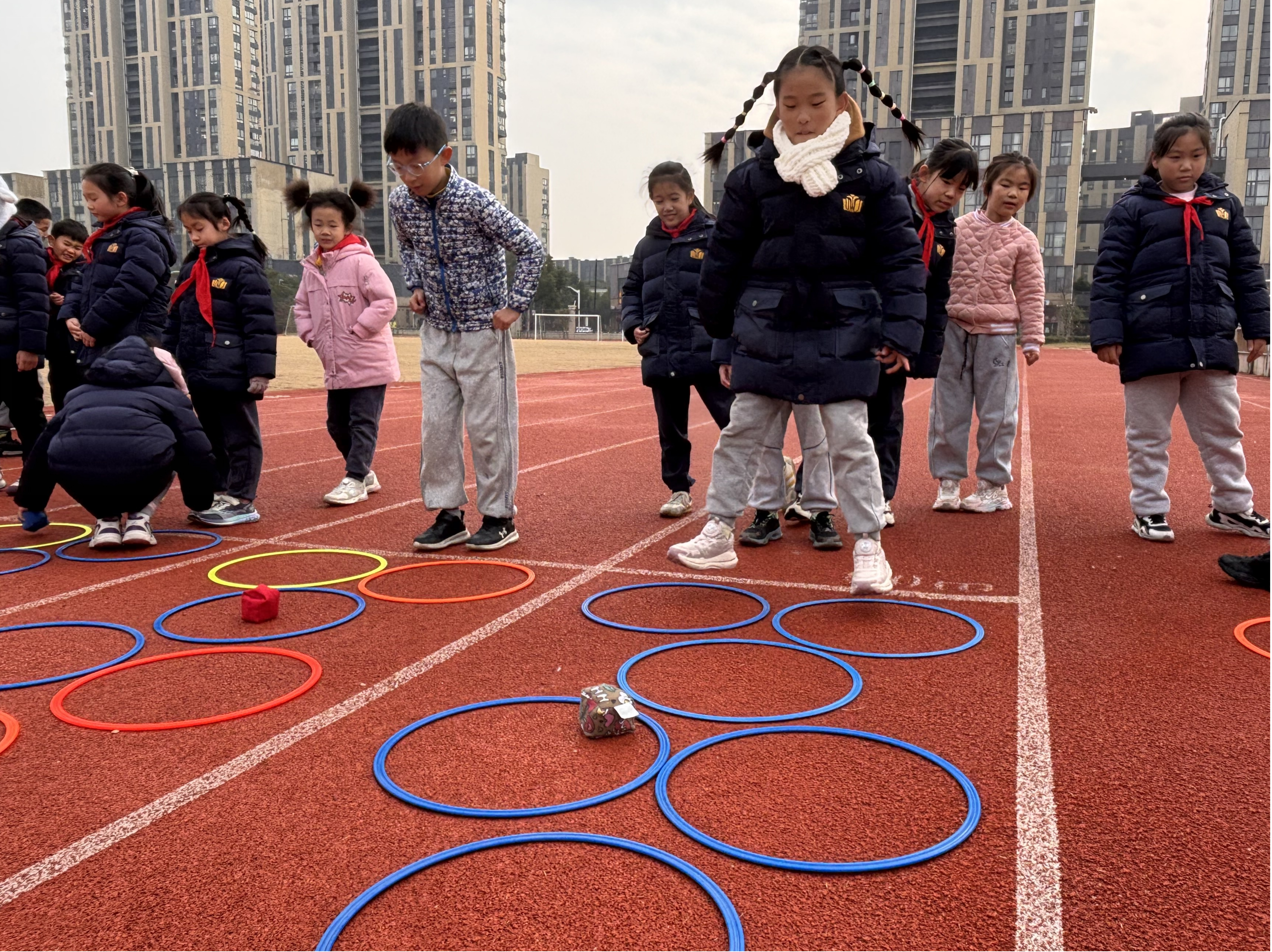 体育课上,低年级孩子借跳房子与五禽戏感知传统游戏的乐趣与中医智慧;高年级学生则在滚铁环中触摸旧日时光。我们不再只是学习运动的动作与规则,更探寻每项运动背后的地域故事,在协作与练习中,体悟传统体育的文化厚度,读懂它的传承意义。
