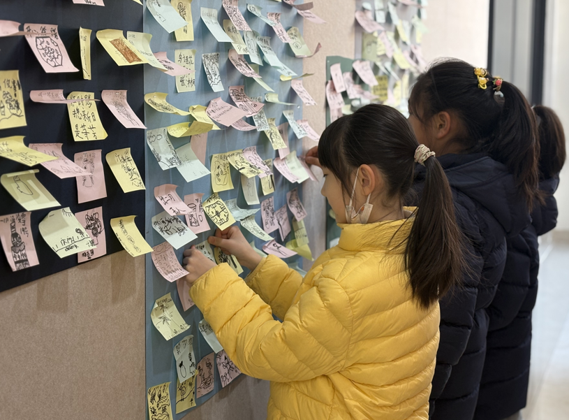 孩子们静静驻足、细细品味,在“艺术涟漪”互动板上留下真诚的感触,让欣赏也成为一种深刻的交流。