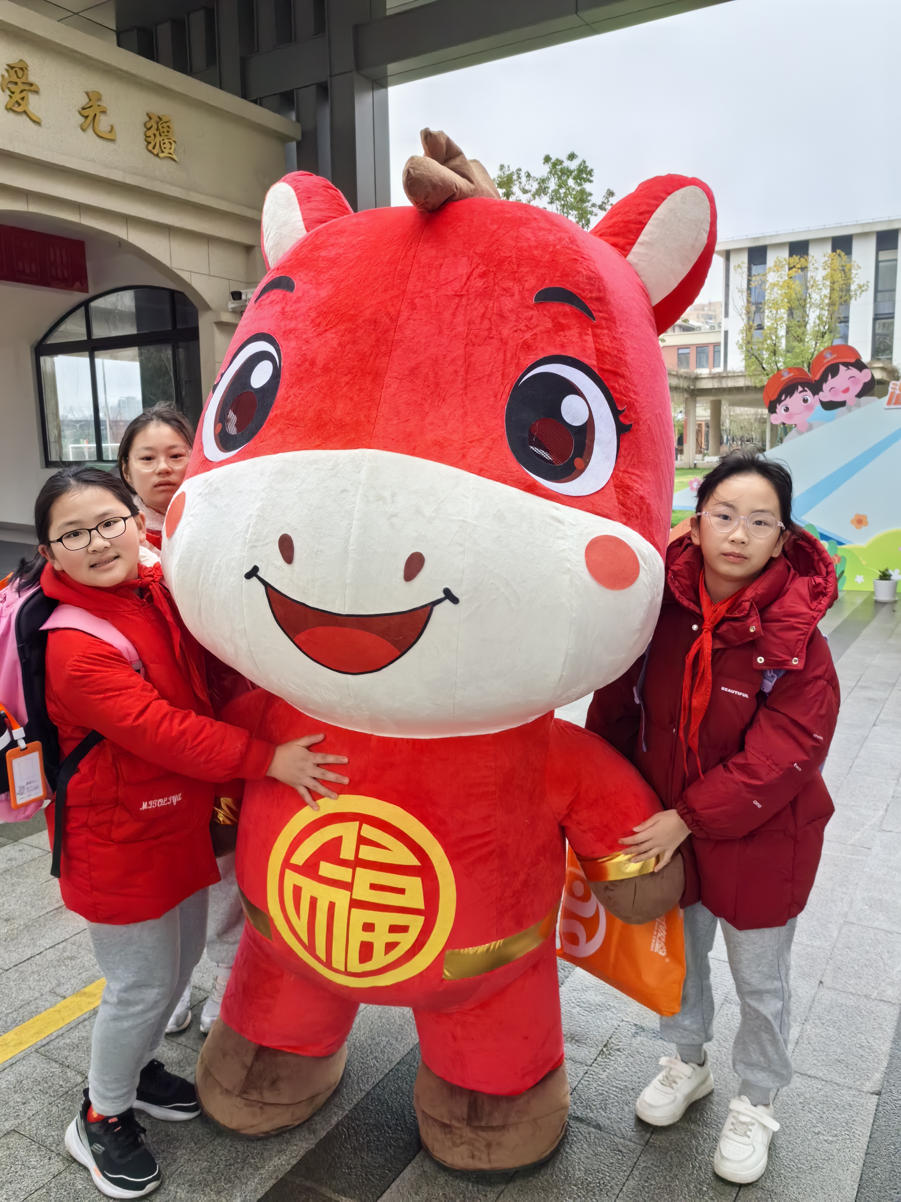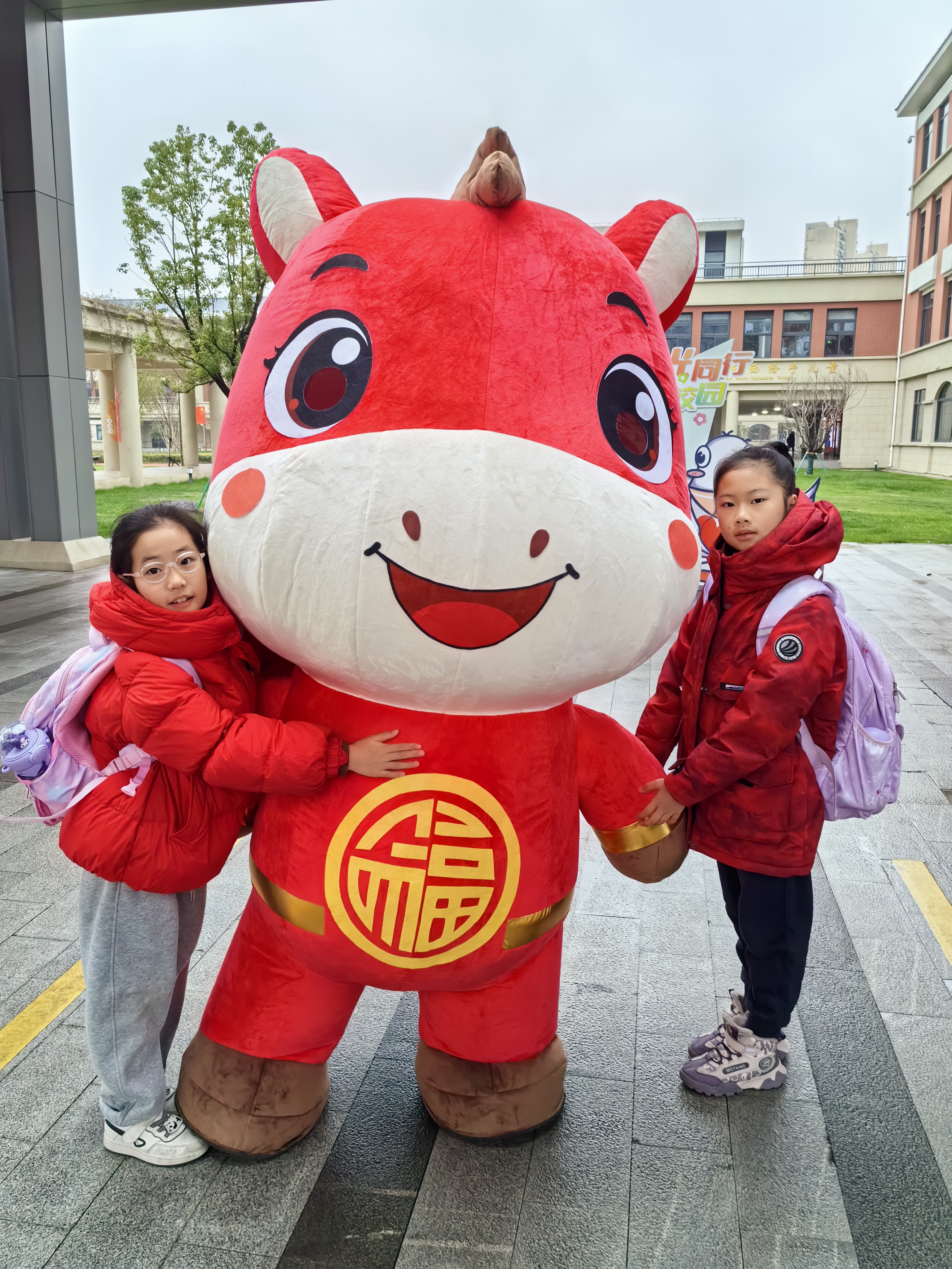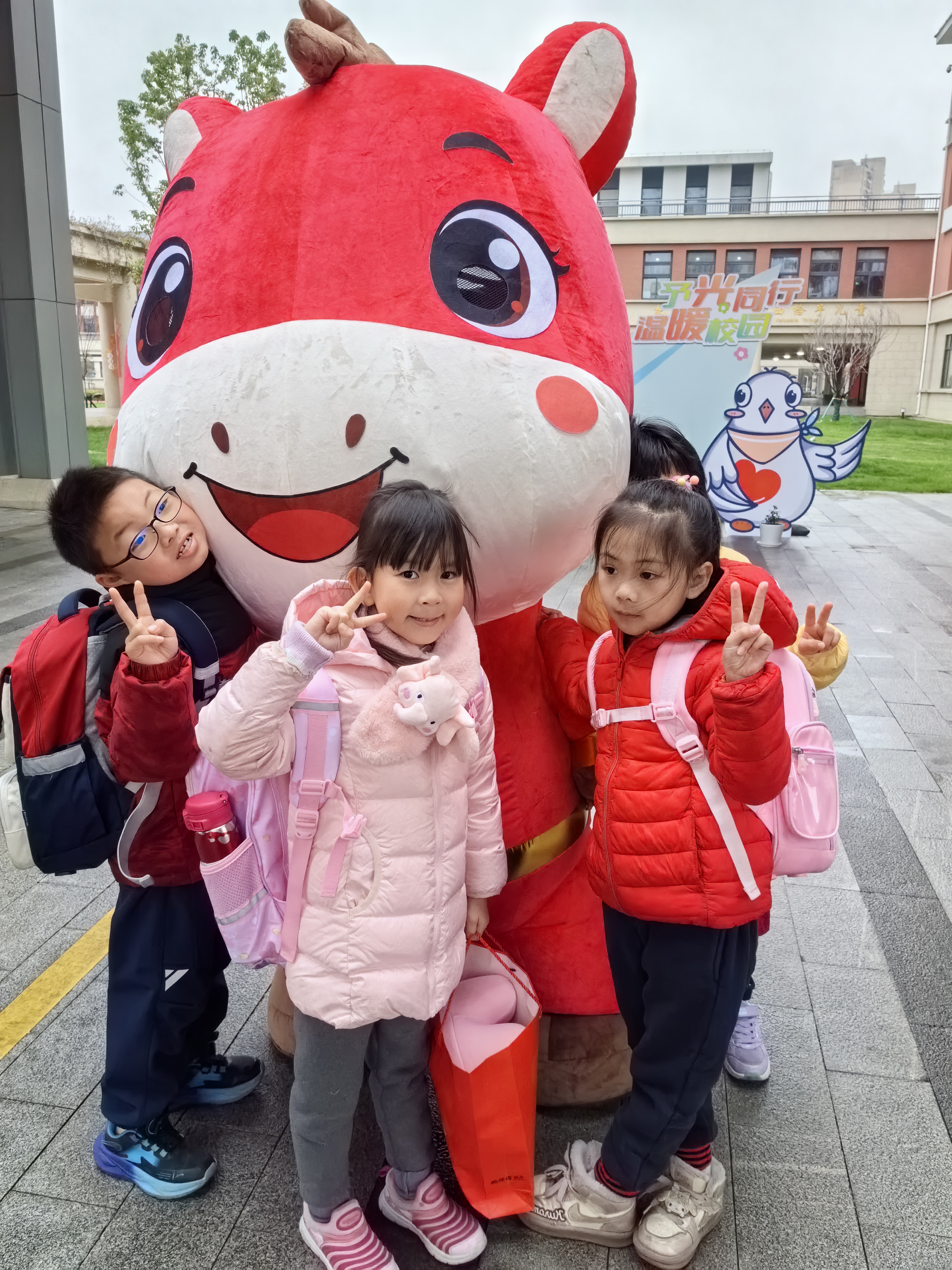 清晨的校门口,穿着小马玩偶服的老师那憨态可掬的样子一下子抓住了孩子们的心。远远看到这个可爱的身影,孩子们便雀跃着飞奔过去,有的拉拉手,有的拍拍肚子,更多的是送上一个个大大的拥抱。
