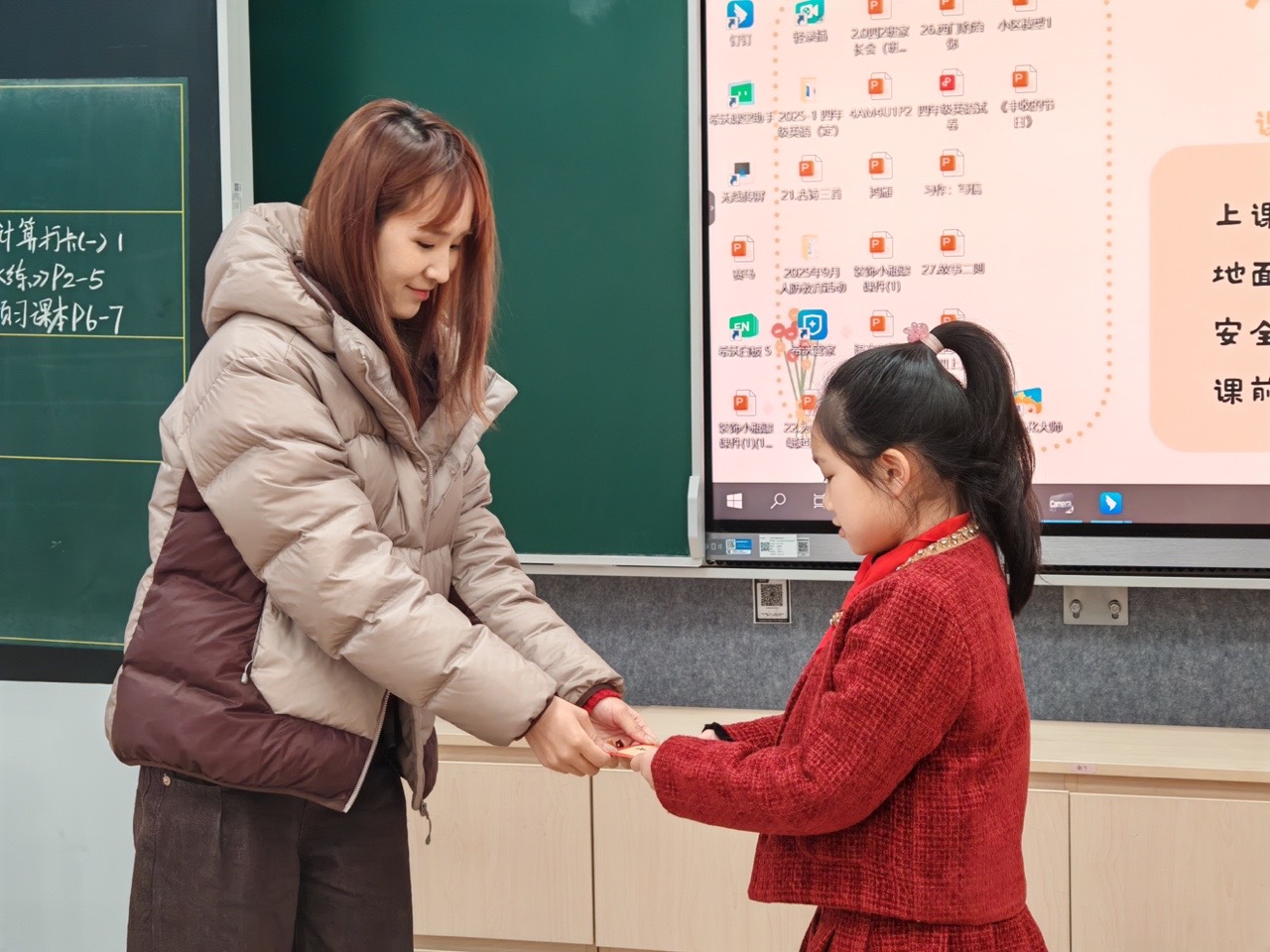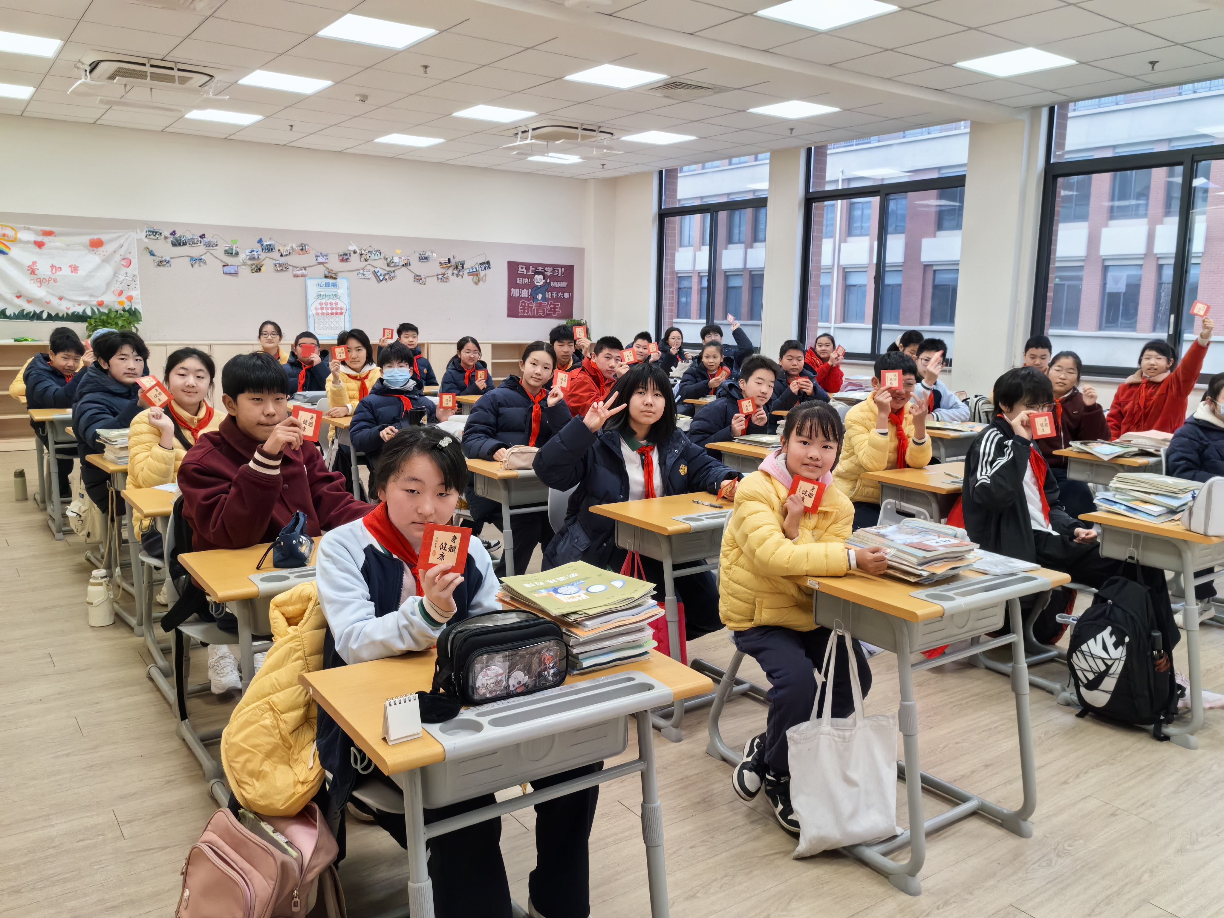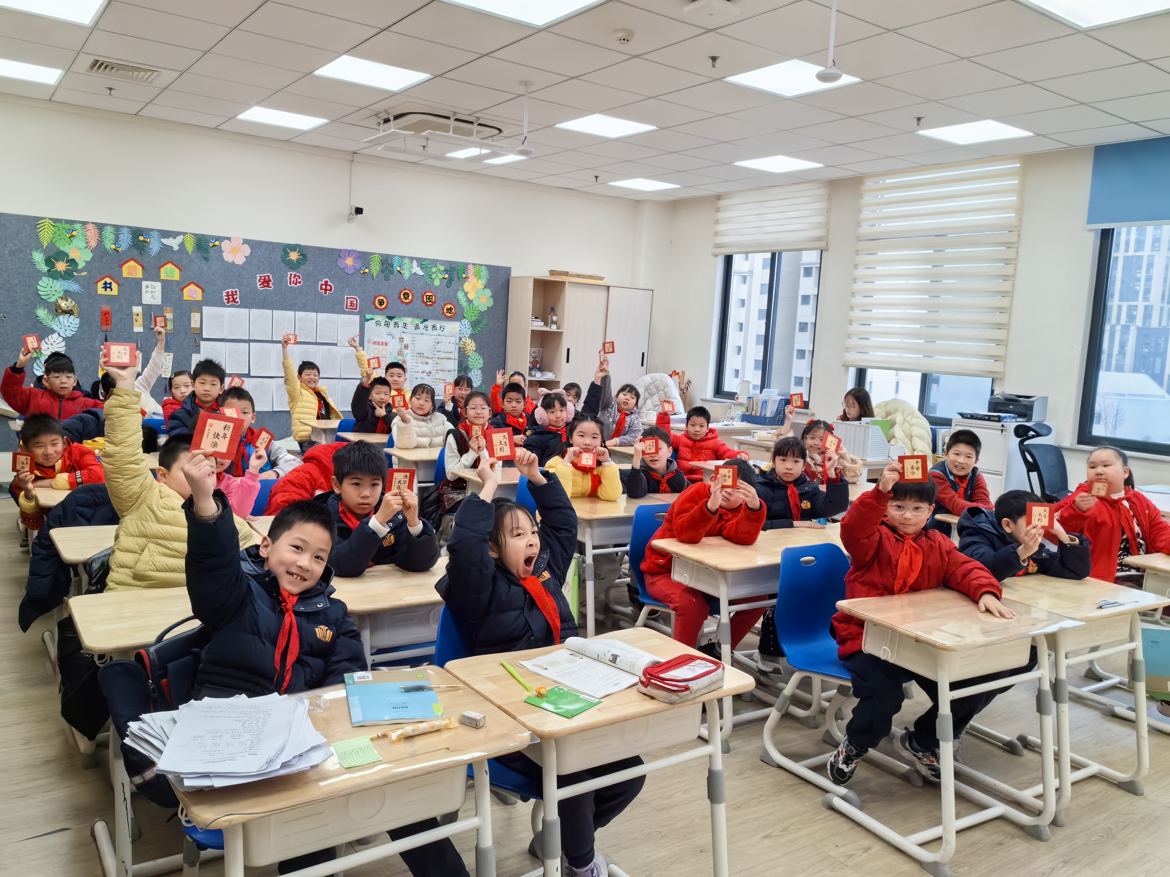 惊喜与温暖,从未缺席。班会课上最让孩子们欢呼雀跃的,莫过于“红包”派送环节。老师们将满载心意的红包一一送到同学们手中,红包封面写满温馨祝福,内里藏着一枚精致的校徽。当小小的红包递到掌心,清脆的笑声漫出窗外,萦绕在宋嘉的每一个角落,将开学的喜悦与温暖,传递给每一个追梦的少年。