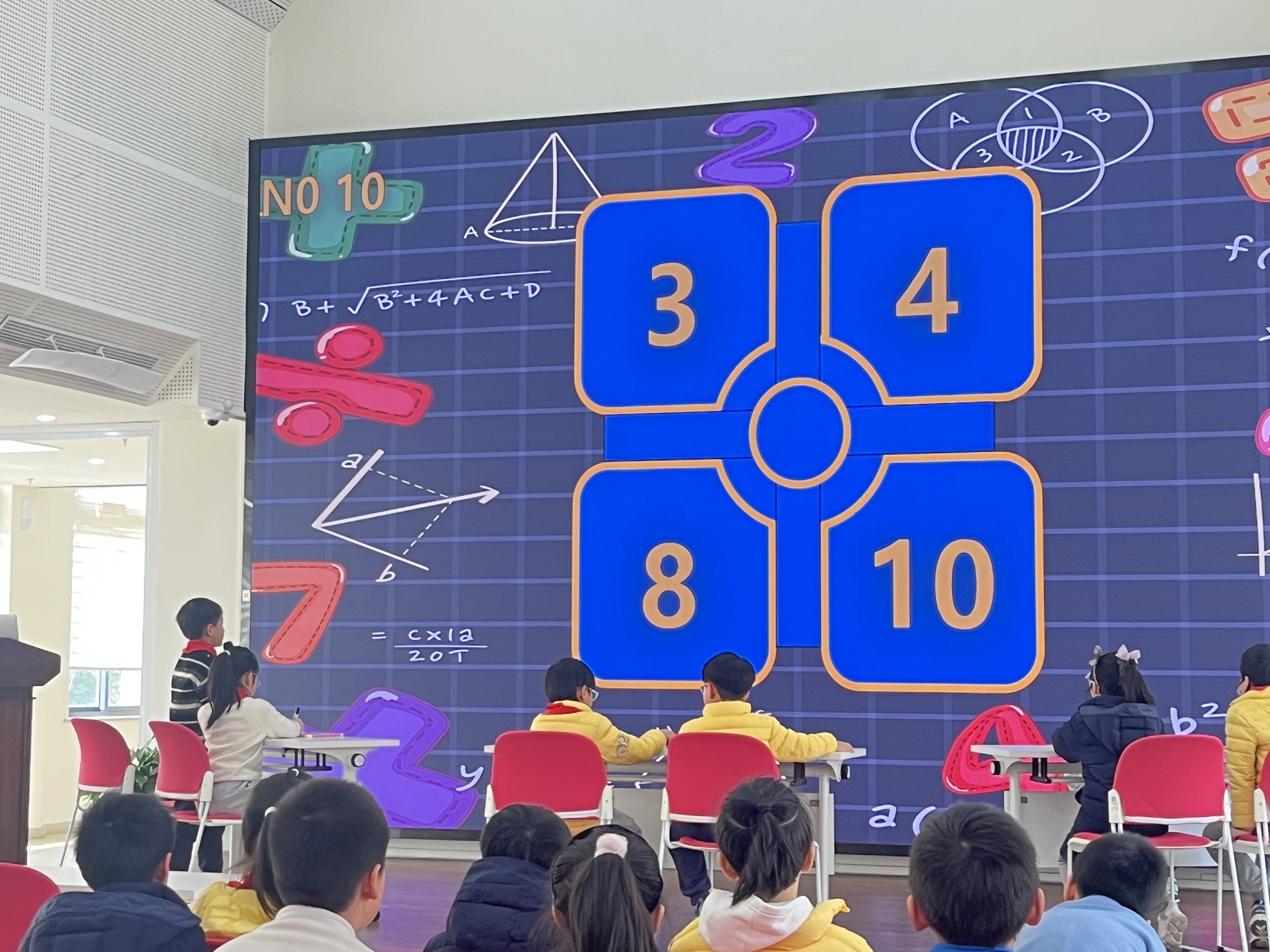 一场场脑力比拼,见证了孩子们的数学实力与成长。三年级24点争霸赛,是速度与智慧的正面交锋。经各班初赛层层选拔,30名数学小能手晋级校级决赛,6个班级两两组队,为集体荣誉全力奋战。五轮比拼轮番上演,屏幕上的数字刚一浮现,选手们便飞速思考、争先抢答,专属好友团助答环节更添博弈趣味——每一次默契配合,都为赛场增添紧张又欢乐的氛围。选手们深思熟虑、沉着应战,赛场上下欢呼不断,既提升了计算与思维敏捷度,更凝聚了满满的团队力量。