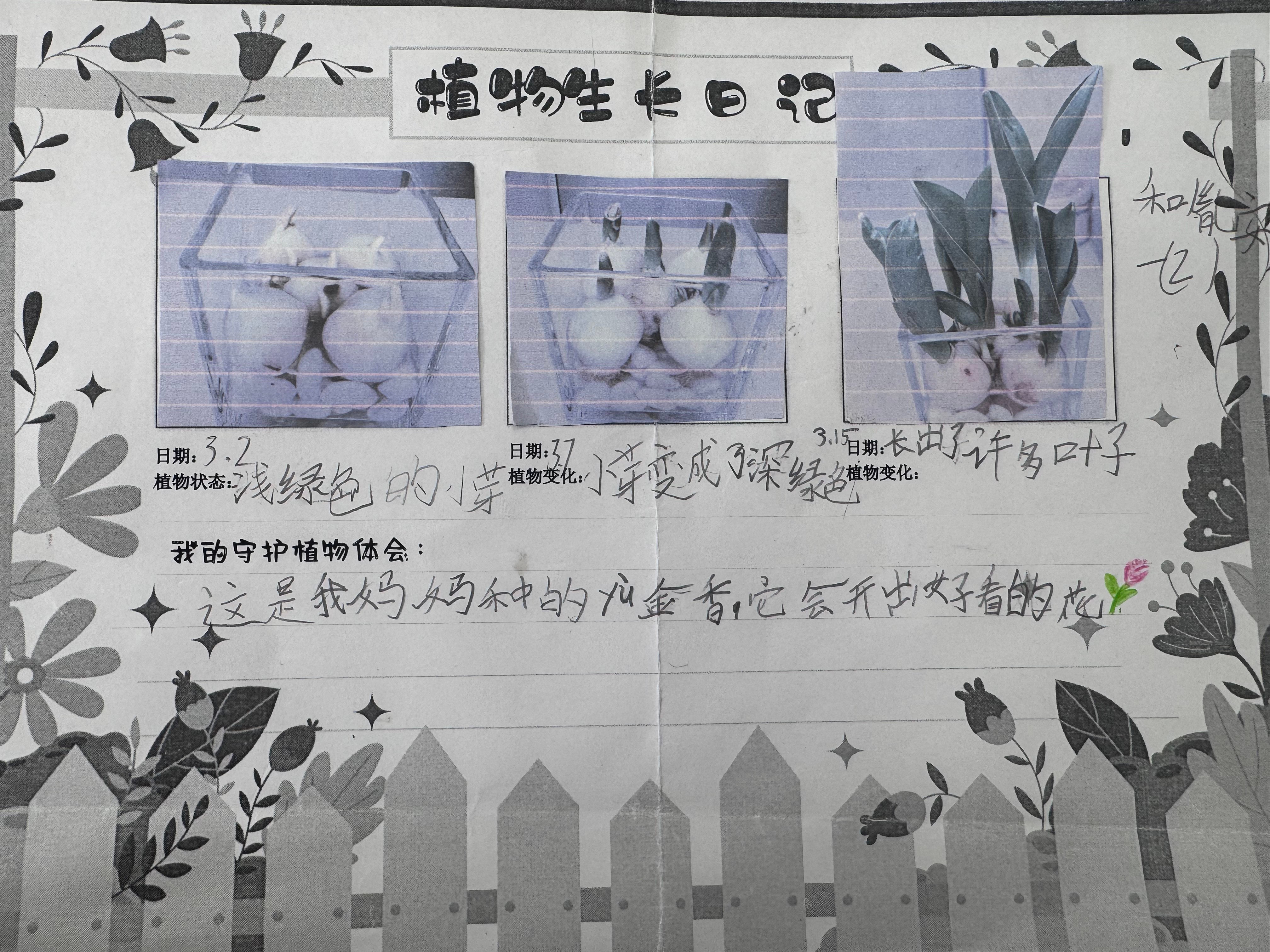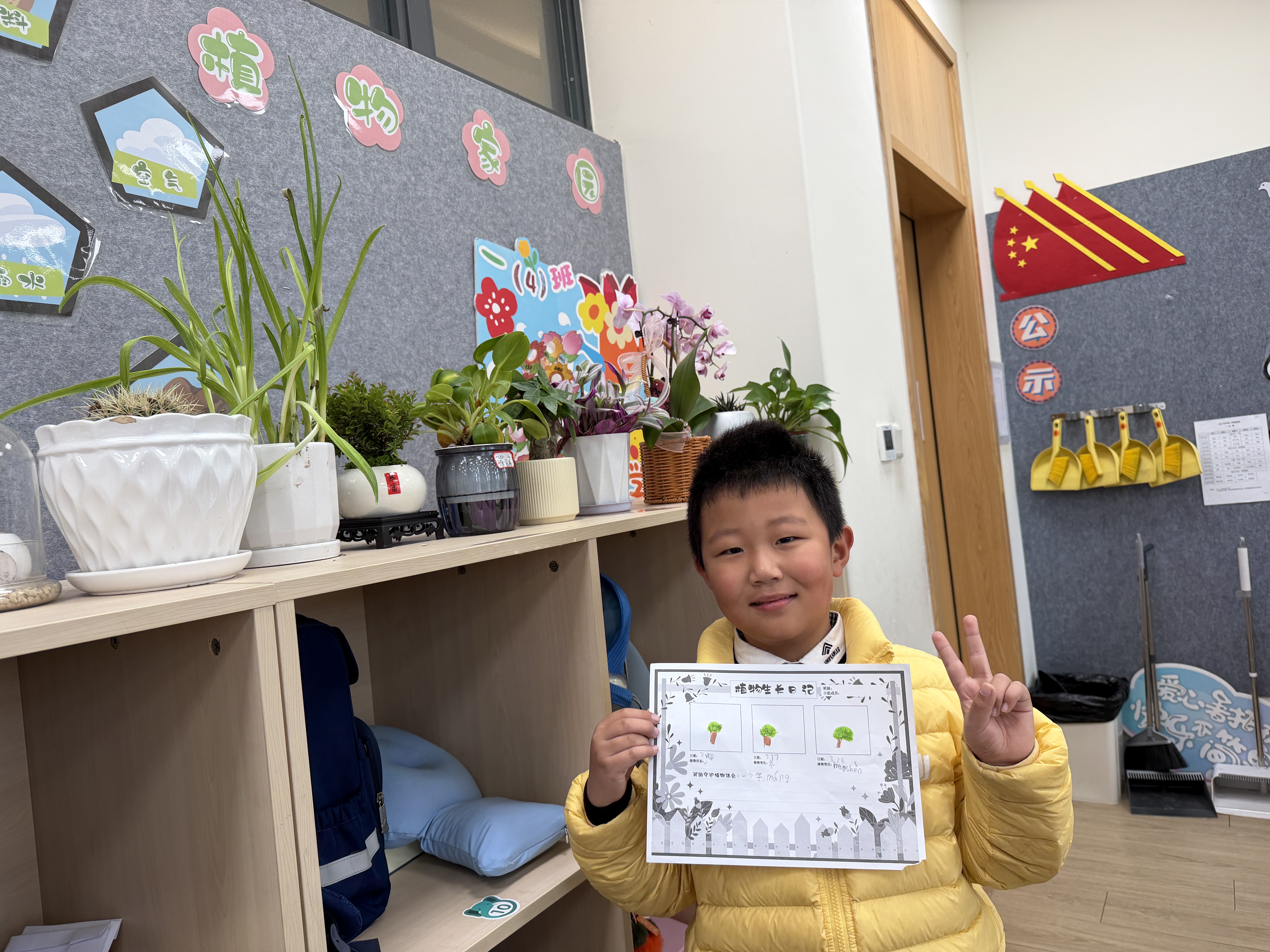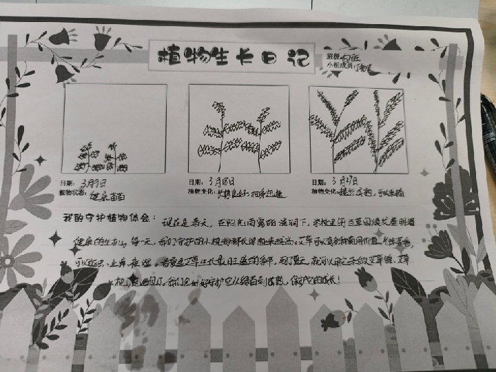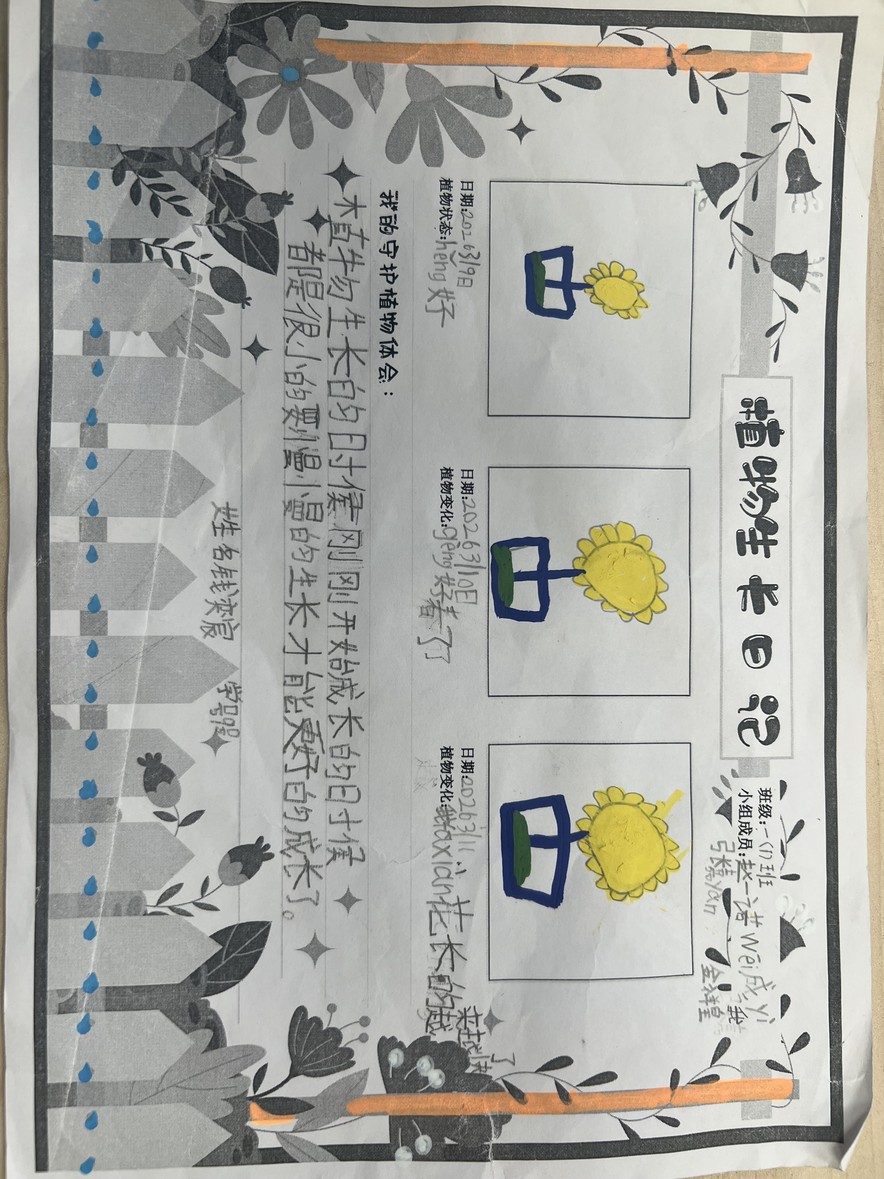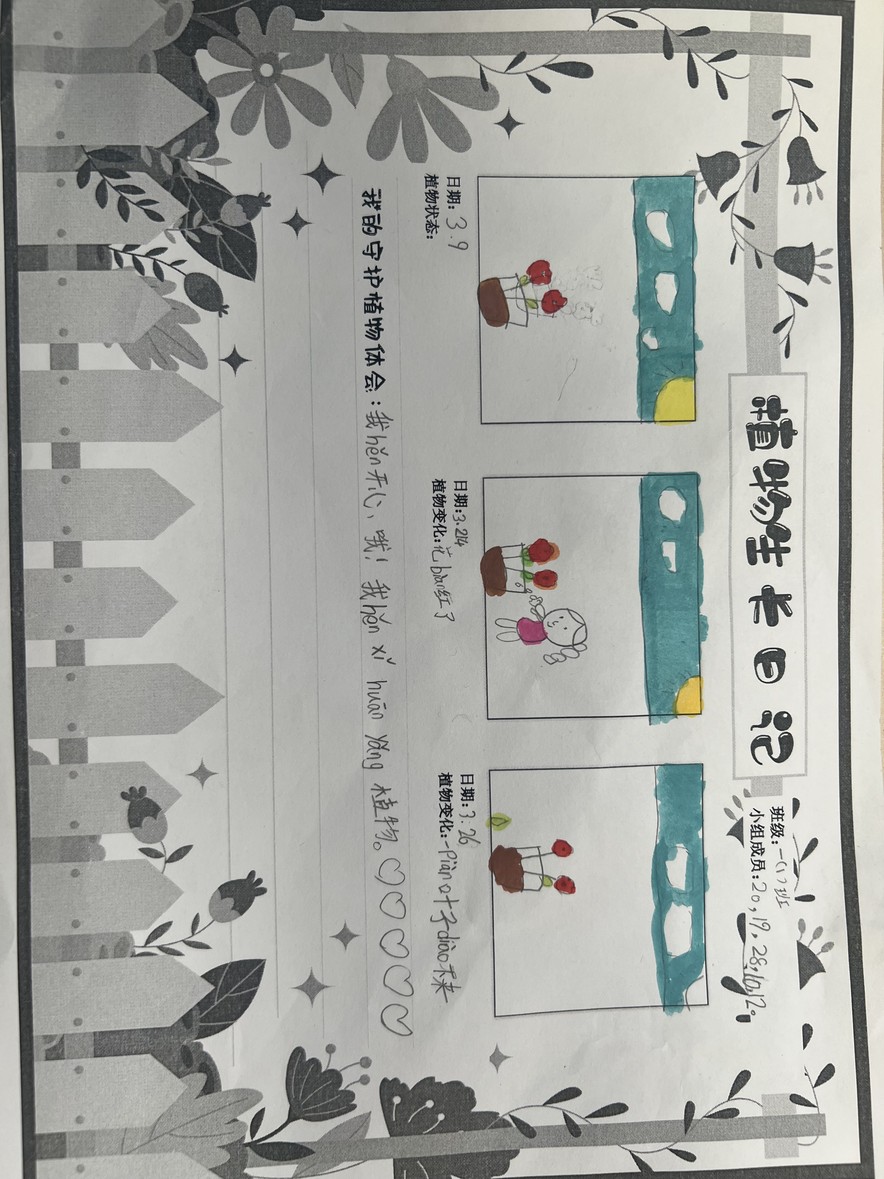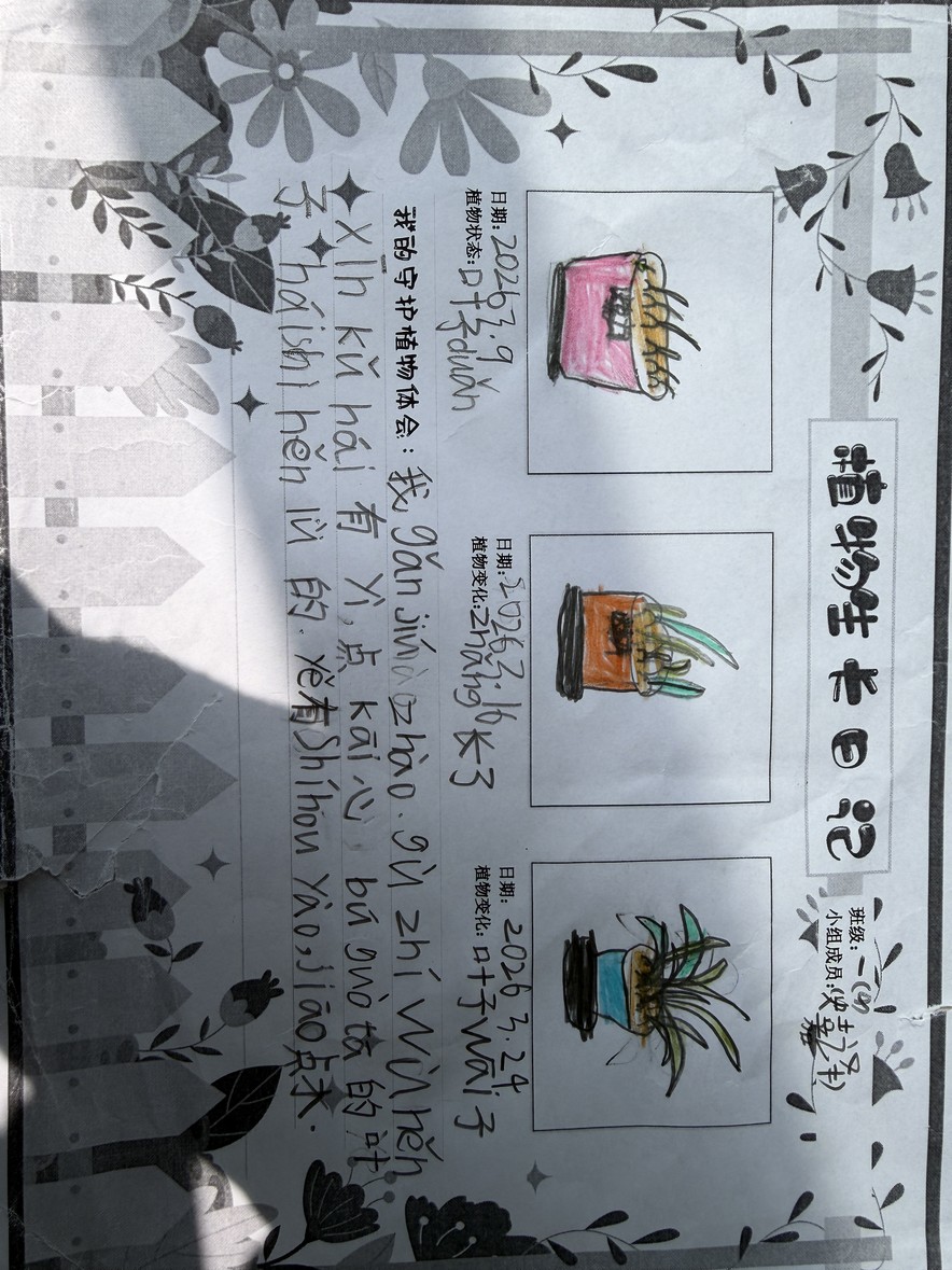 一年级的小朋友们化身“绿植小卫士”,5人一组认领校园绿植,浇水、擦叶、细心观察,一笔一画记录植物的生长变化,在呵护小生命的过程中,读懂责任与陪伴的意义。
