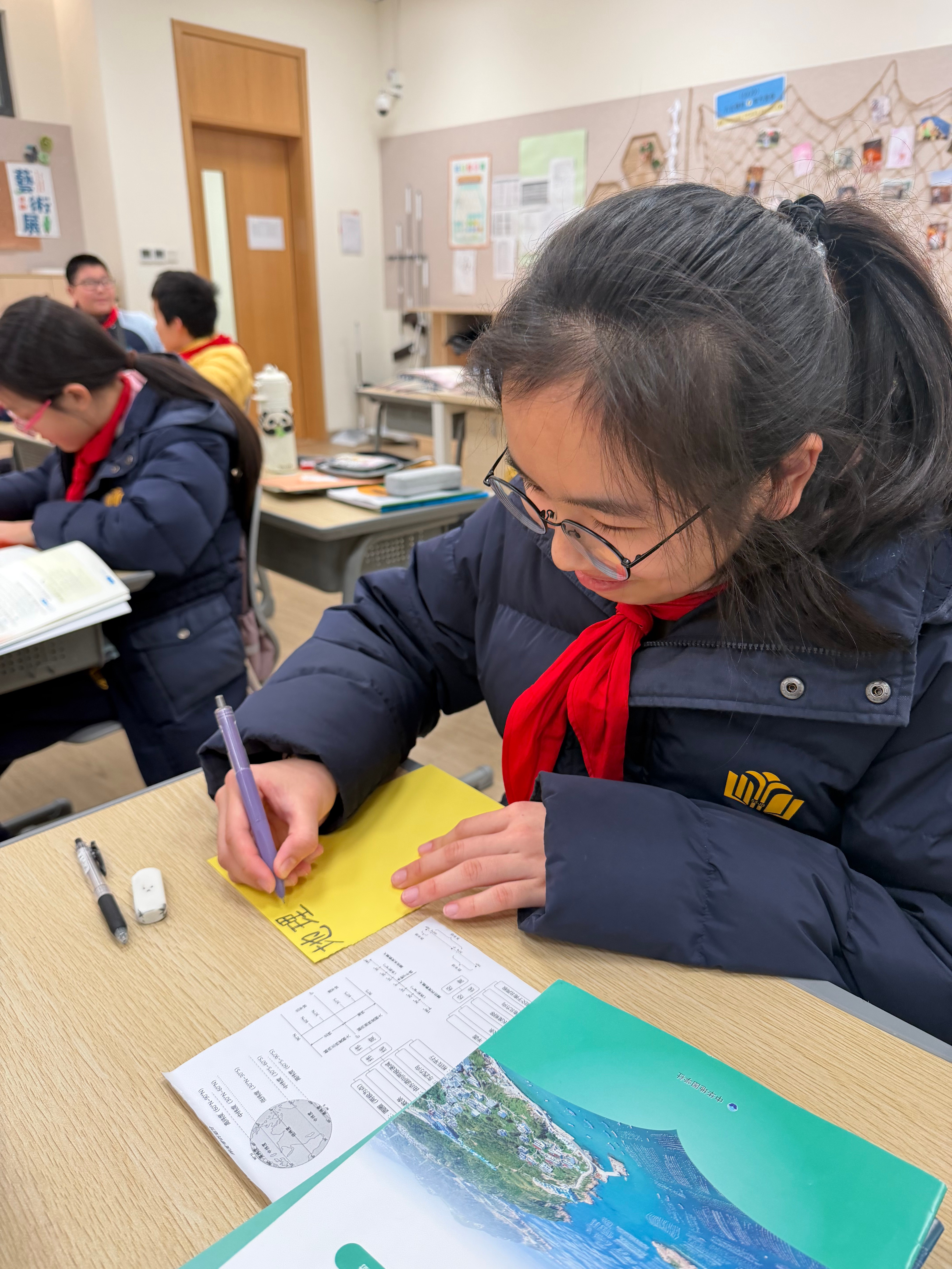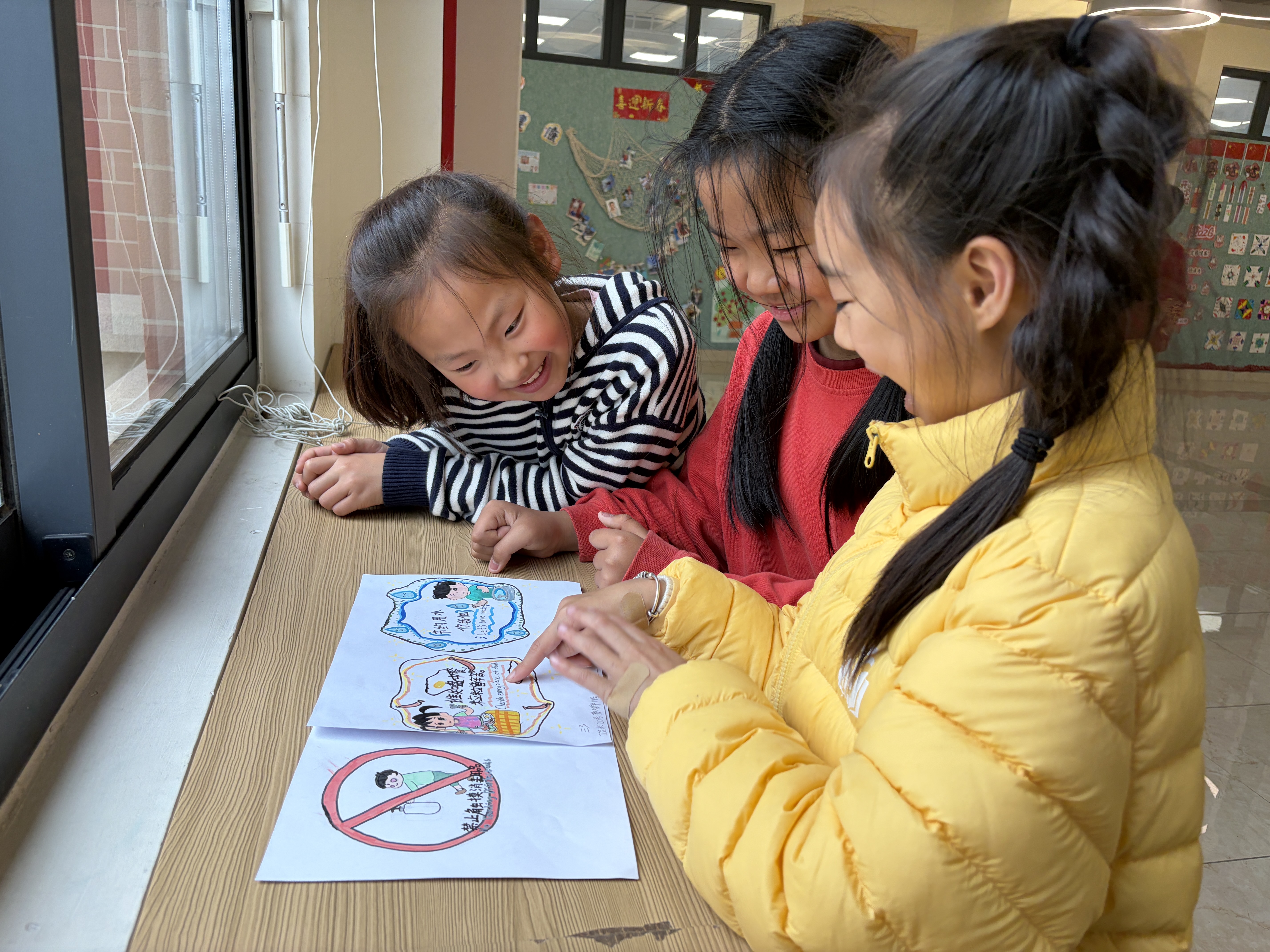 六年级的学长学姐们则开启“知识传递公益行”,小组合作梳理学科重点,制作图文并茂的知识册赠与五年级学弟学妹,让知识在校园里接力,让成长在互助中前行。