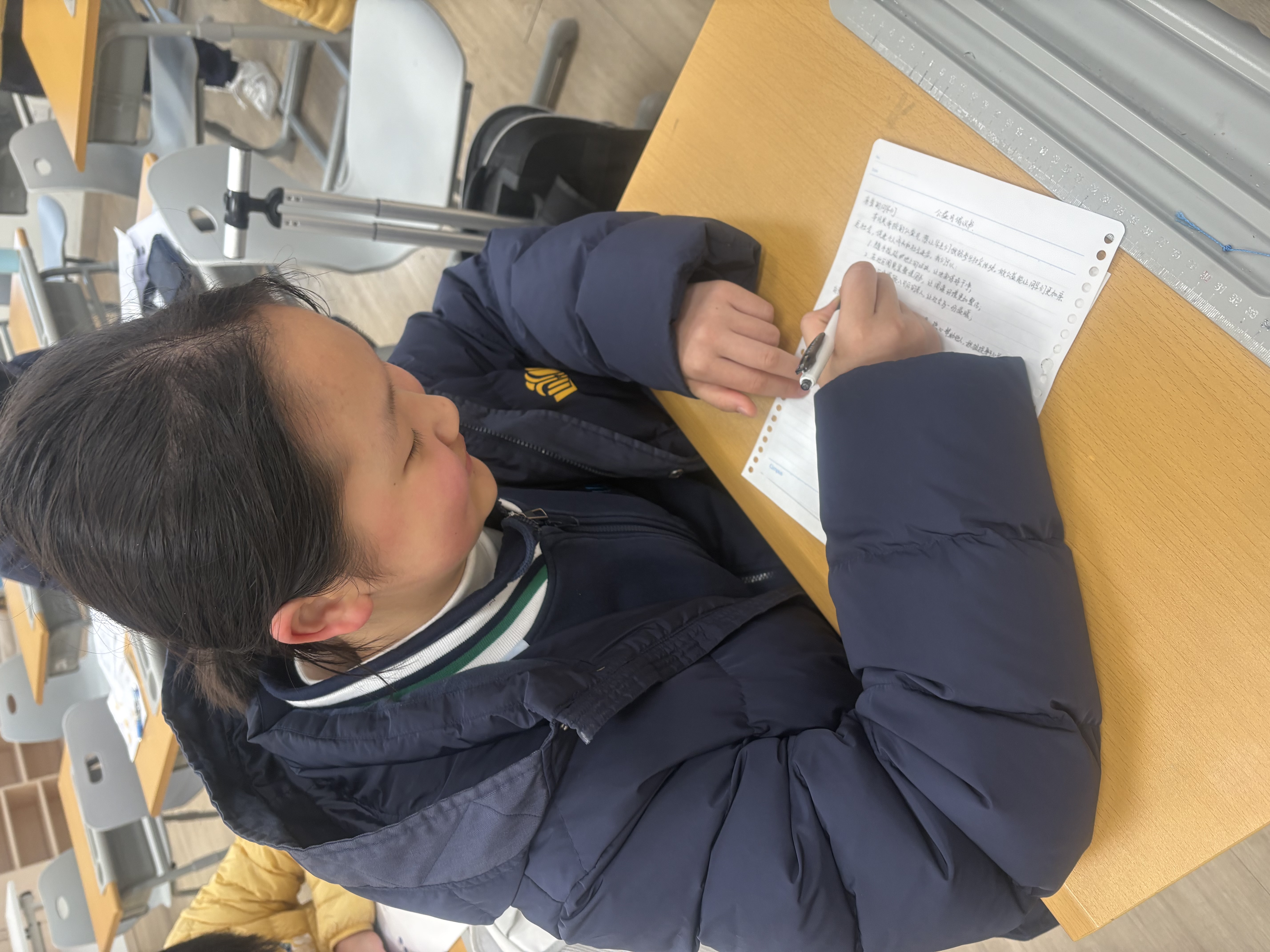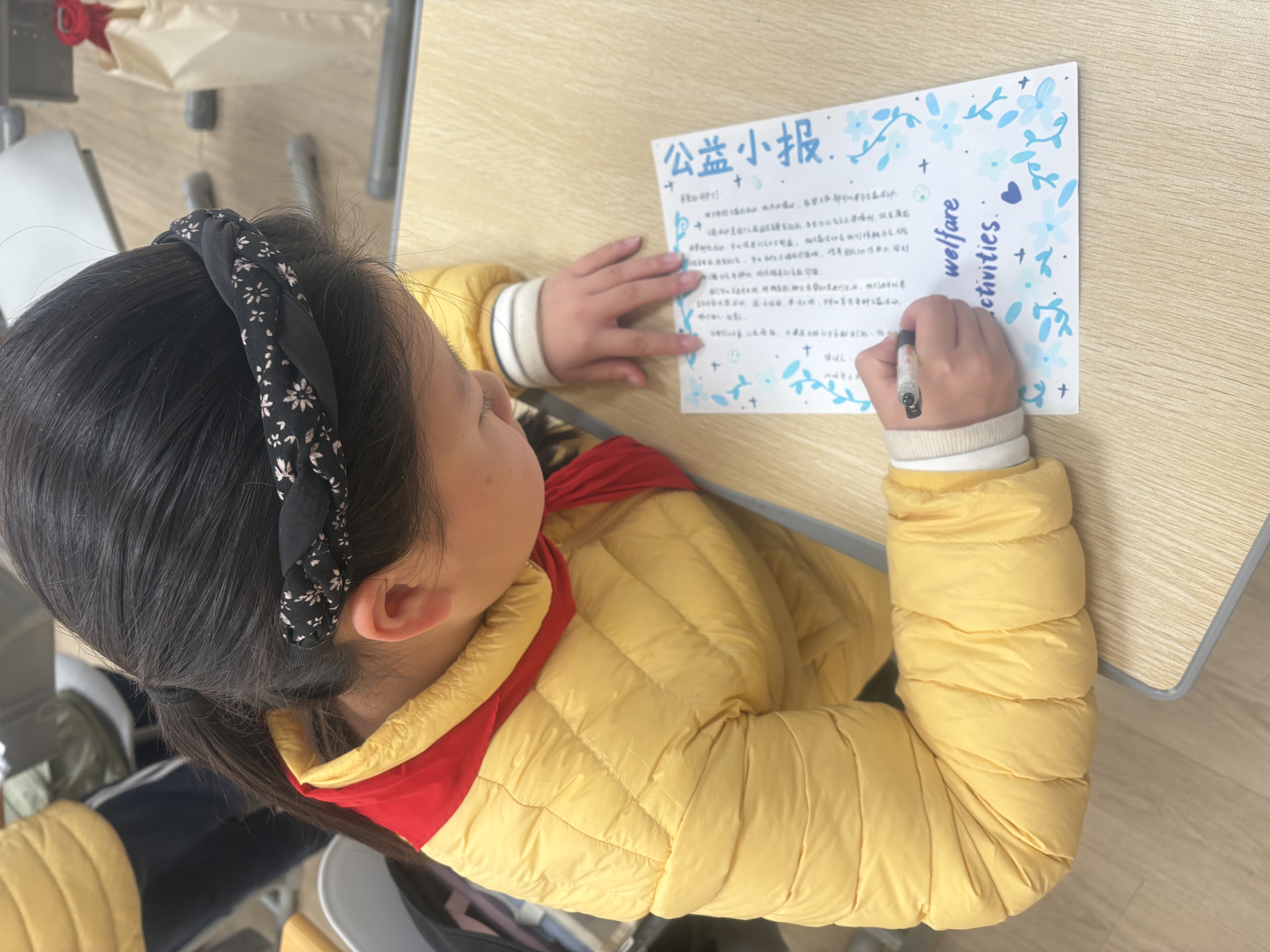 八年级的同学们以笔为媒,撰写公益倡议书,将对公益的理解、对美好的期许凝于笔尖,优秀稿件还将刊登校刊,通过本月的红领巾广播时间让公益之声被更多人听见。